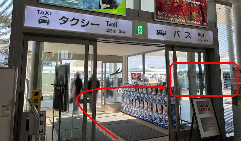 手荷物を受け取った後、まっすぐ向かえば、バス停まで1分程で到着できます。