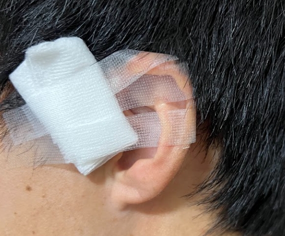 術後は、出血が少ない場合でも、最低数日は、耳に被さるようにガーゼ・テープを付けることになりますので、その期間イヤホンを付けられなくなってしまいます。