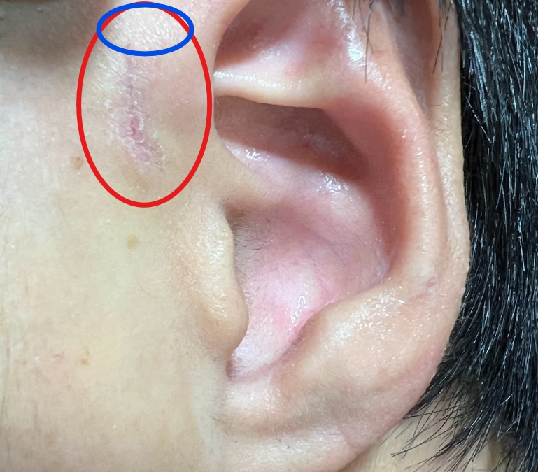 こちらの写真は、私の左耳の耳瘻孔(じろうこう)の写真です。