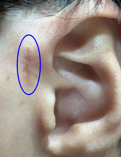 また、切開前に、耳瘻孔を染液で染めることを聞いていましたが、いつ染めたかはわからずでした。