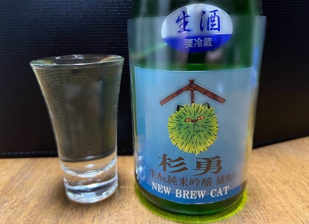 この記事で紹介する、「杉勇 生酛純米吟醸 雄町 NEW BLUE CAT」のラベルには、杉玉に猫の顔が描かれたものとなっており、かわいらしいデザインとなっています。